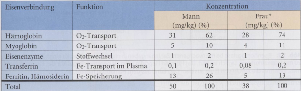 Tab. 1: Verteilung von Eisen im Körper