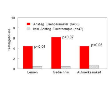 Unterschied in den Testergebnissen zwischen Personen mit und ohne Eisenmangel festzustellen. Nach Behandlung